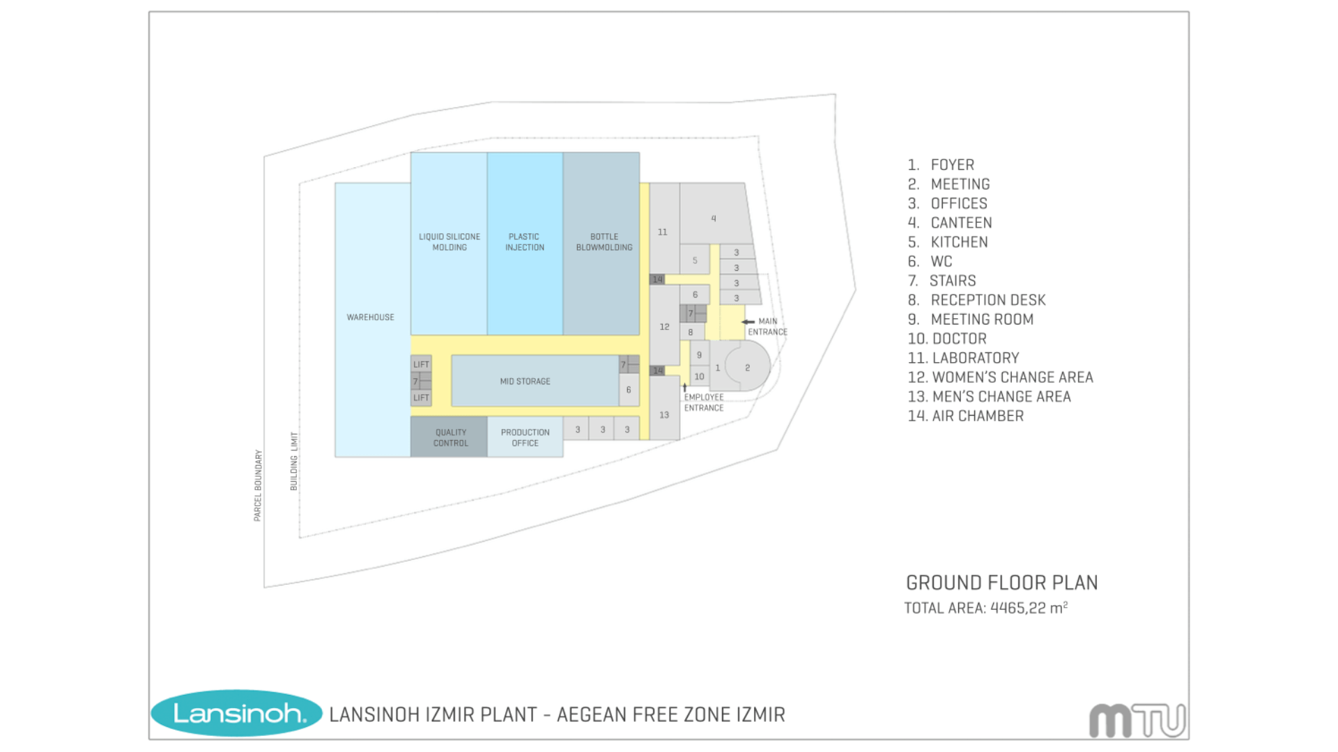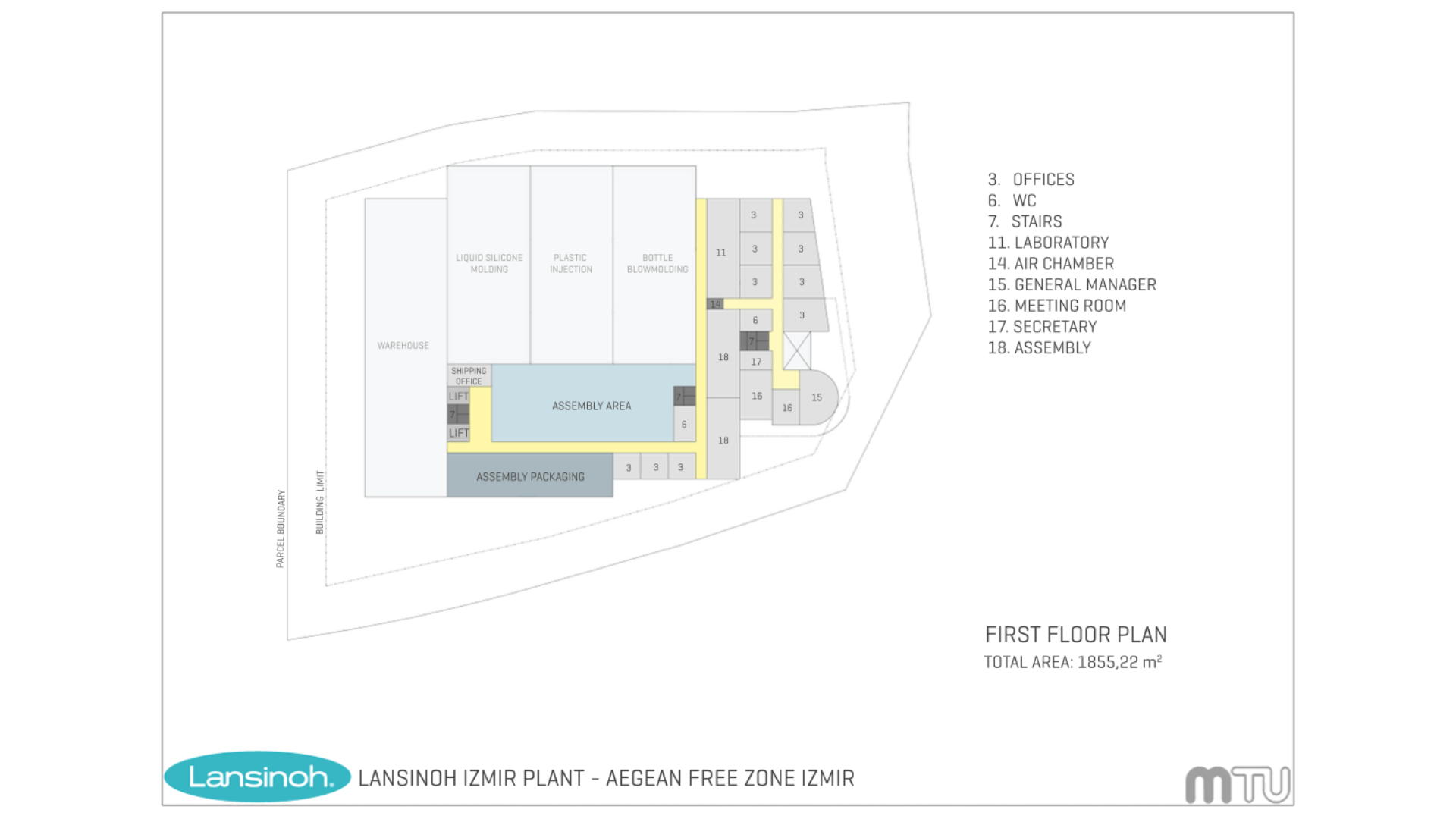 İzmir’in Gaziemir ilçesinde bulunan Lansinoh Fabrikası genel ve özel işlevsel programların ayrımının sorgulandığı bir yapıdır. Köşeyi tutan heykelsi kitle, odakları üzerine çekip davetkar bi his uyandırmaya çalışmıştır.